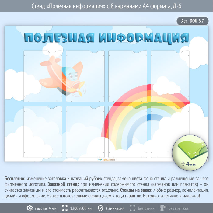 Стенд «Полезная информация» с 8 карманами А4 формата (DOU-6.7) в Волгограде купить