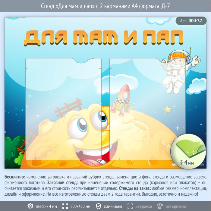 Стенд «Для мам и пап» с 2 карманами А4 формата (DOU-7.2) в Волгограде купить