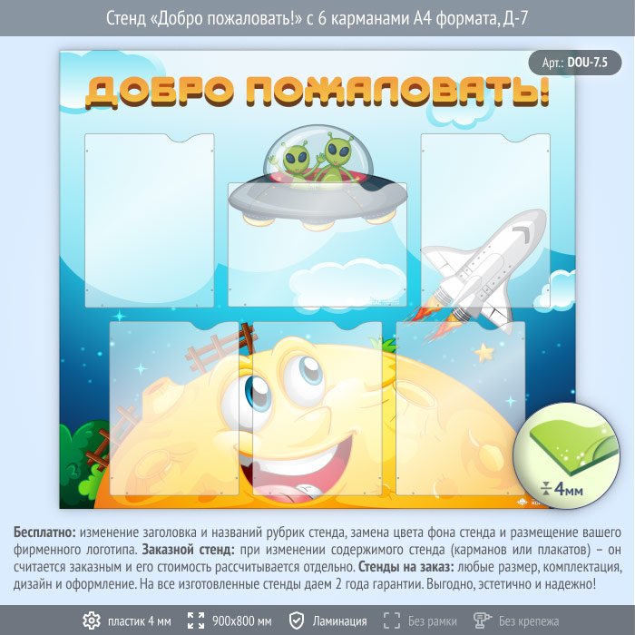 Стенд «Добро пожаловать!» с 6 карманами А4 формата (DOU-7.5) в Волгограде купить
