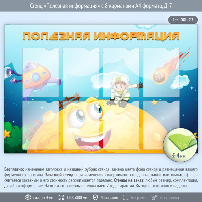 Стенд «Полезная информация» с 8 карманами А4 формата (DOU-7.7) в Волгограде купить