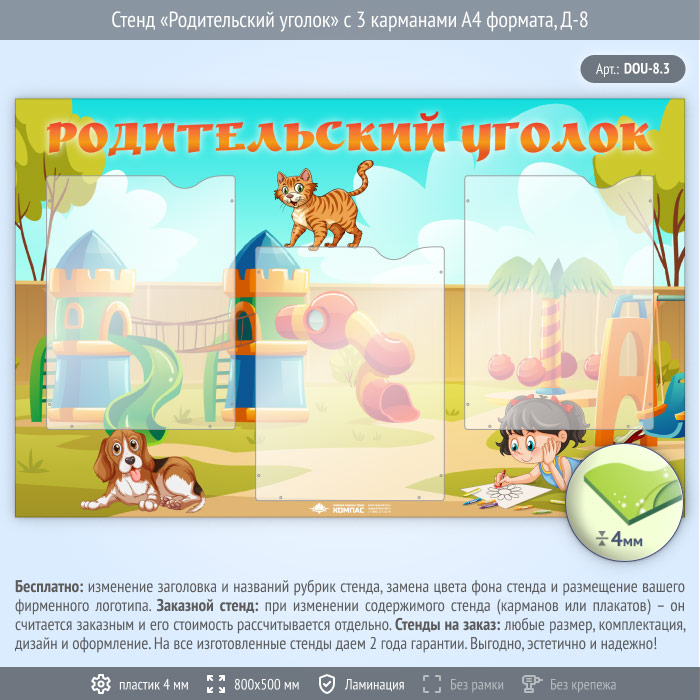 Стенд «Родительский уголок» с 3 карманами А4 формата (DOU-8.3) в Волгограде купить