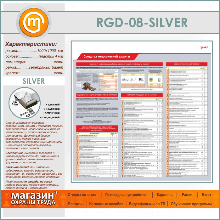 Стенд «Средства медицинской защиты» (RGD-08-SILVER) в Волгограде купить