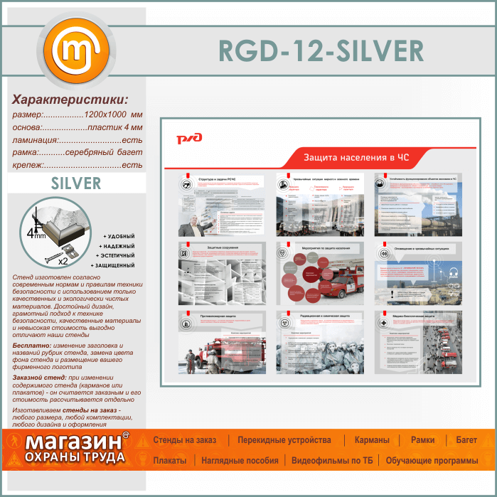 Стенд «Защита населения в ЧС» (RGD-12-SILVER) в Волгограде купить