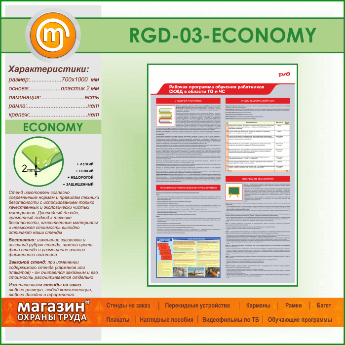 Стенд «Рабочая программа обучения работников СКЖД в области ГО и ЧС» (RGD-03-ECONOMY) в Волгограде купить