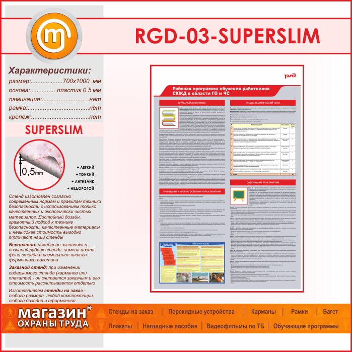 Стенд «Рабочая программа обучения работников СКЖД в области ГО и ЧС» (RGD-03-SUPERSLIM) в Волгограде купить