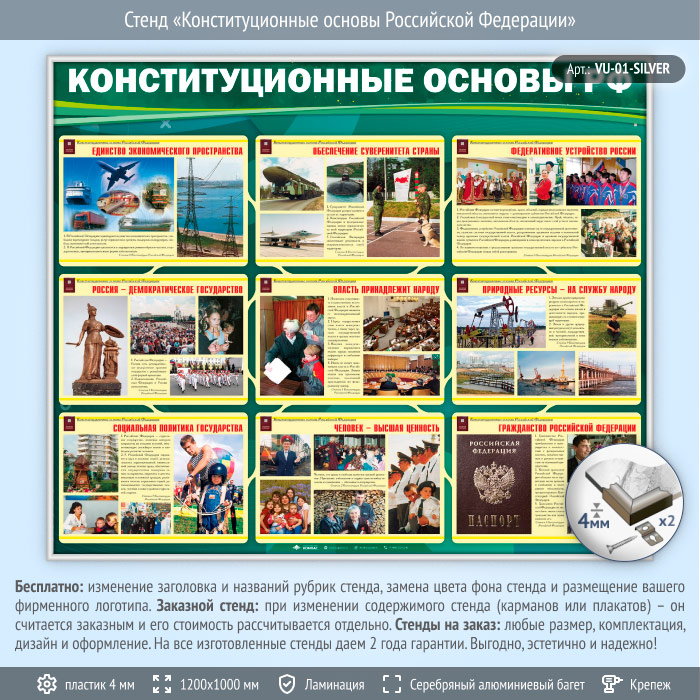 Стенд «Конституционные основы Российской Федерации» (VU-01-SILVER) в Волгограде купить