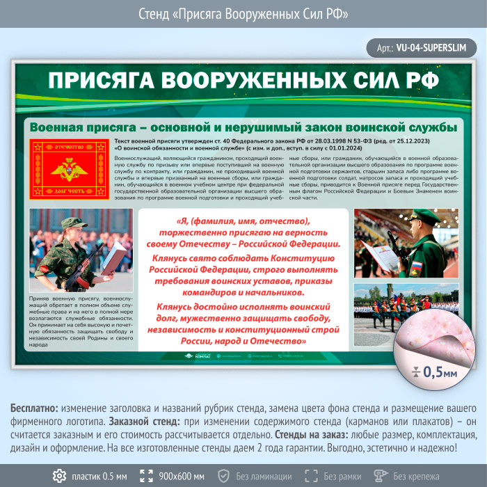 Стенд «Присяга Вооруженных Сил РФ» (VU-04-SUPERSLIM) в Волгограде купить