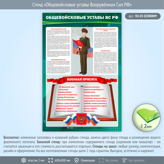 Стенд «Общевойсковые уставы Вооружённых Сил РФ» (VU-05-ECONOMY) в Волгограде купить