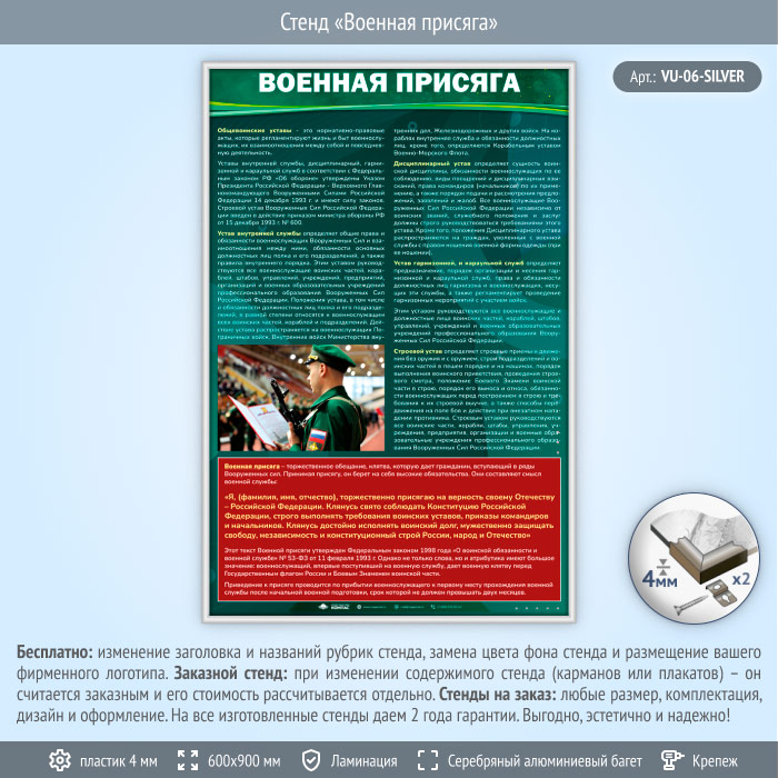 Стенд «Военная присяга» (VU-06-SILVER) в Волгограде купить