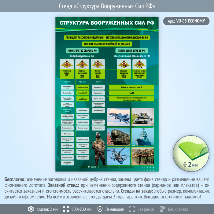 Стенд «Структура Вооружённых Сил РФ» (VU-08-ECONOMY) в Волгограде купить