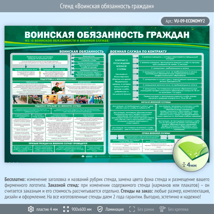Стенд «Воинская обязанность граждан» (VU-09-ECONOMY2) в Волгограде купить