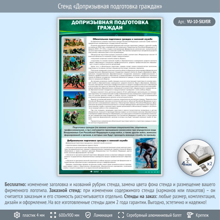 Стенд «Допризывная подготовка граждан» (VU-10-SILVER) в Волгограде купить