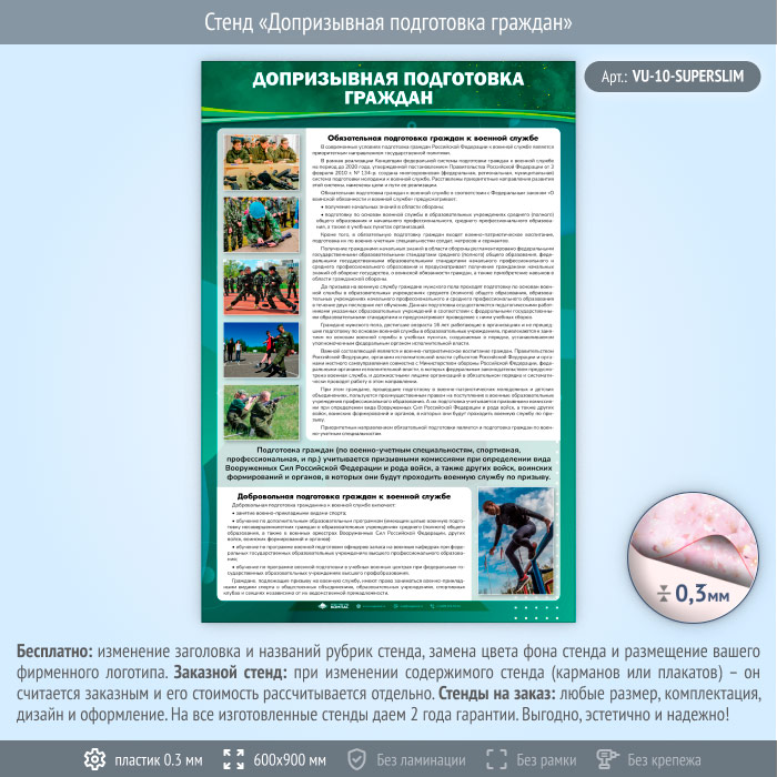Стенд «Допризывная подготовка граждан» (VU-10-SUPERSLIM) в Волгограде купить