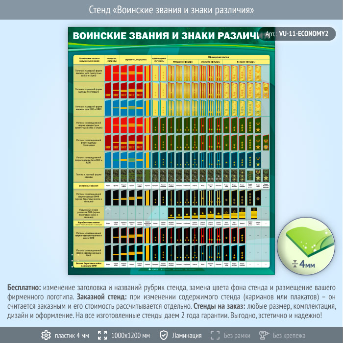 Стенд «Воинские звания и знаки различия» (VU-11-ECONOMY2) в Волгограде купить