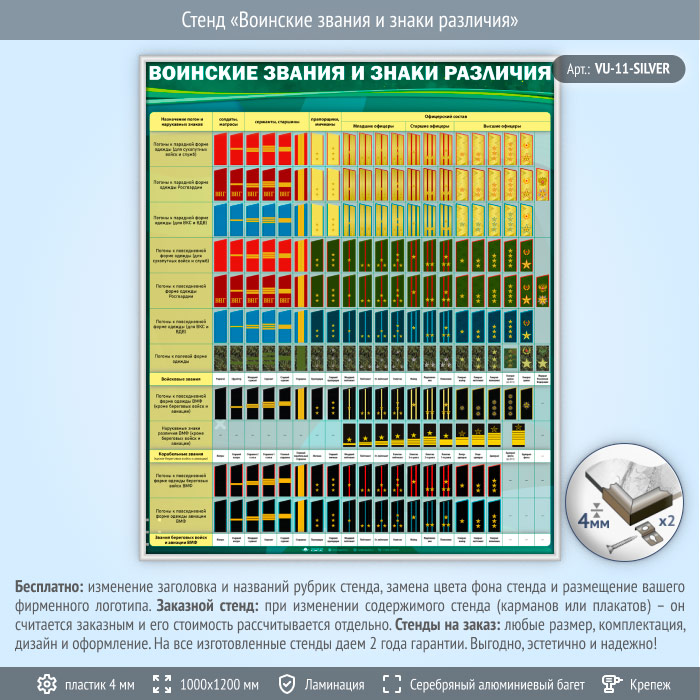 Стенд «Воинские звания и знаки различия» (VU-11-SILVER) в Волгограде купить
