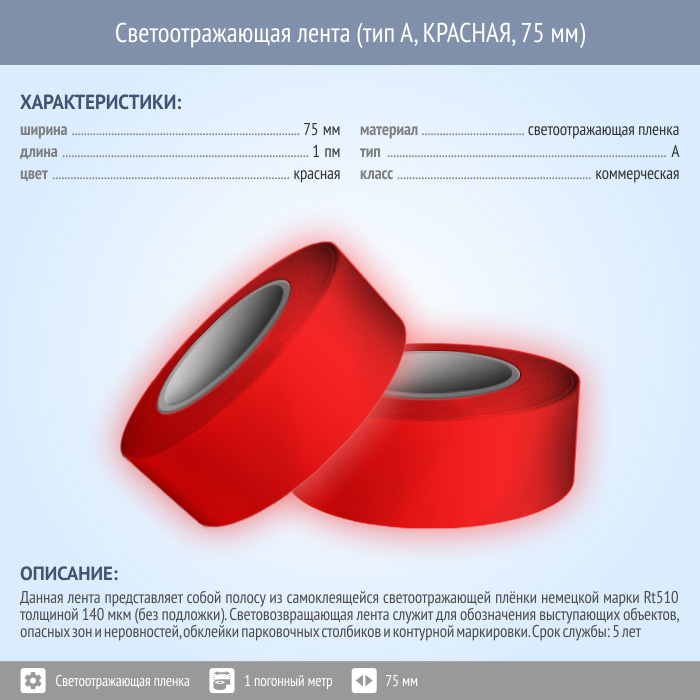 Светоотражающая однородная лента (тип А, КРАСНАЯ, 75 мм х 1 п.м.) в Волгограде купить