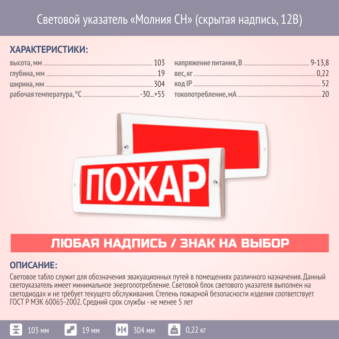 Световой указатель Молния СН (скрытая надпись, 12В) в Волгограде купить