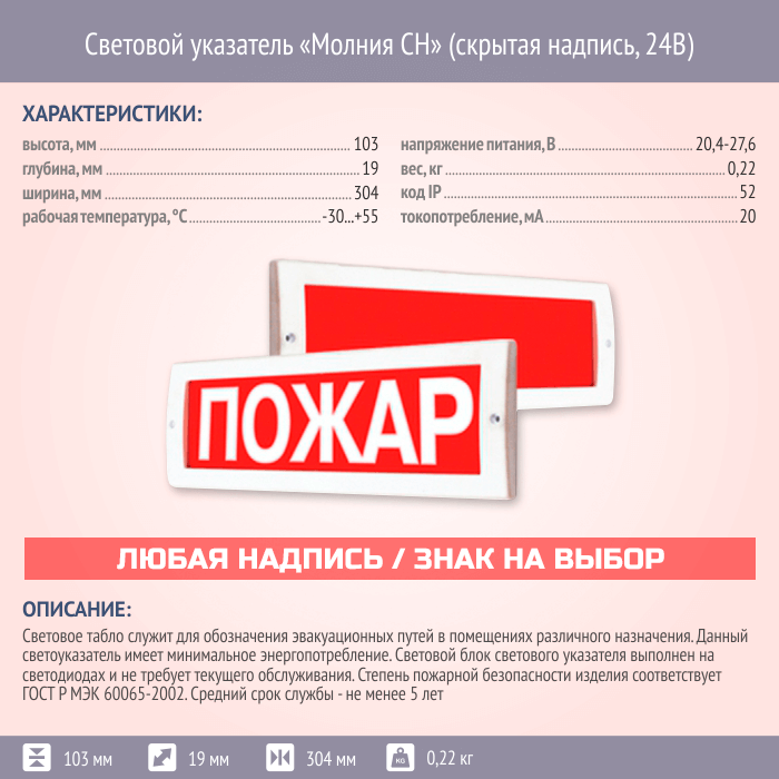 Световой указатель Молния СН (скрытая надпись, 24В) в Волгограде купить