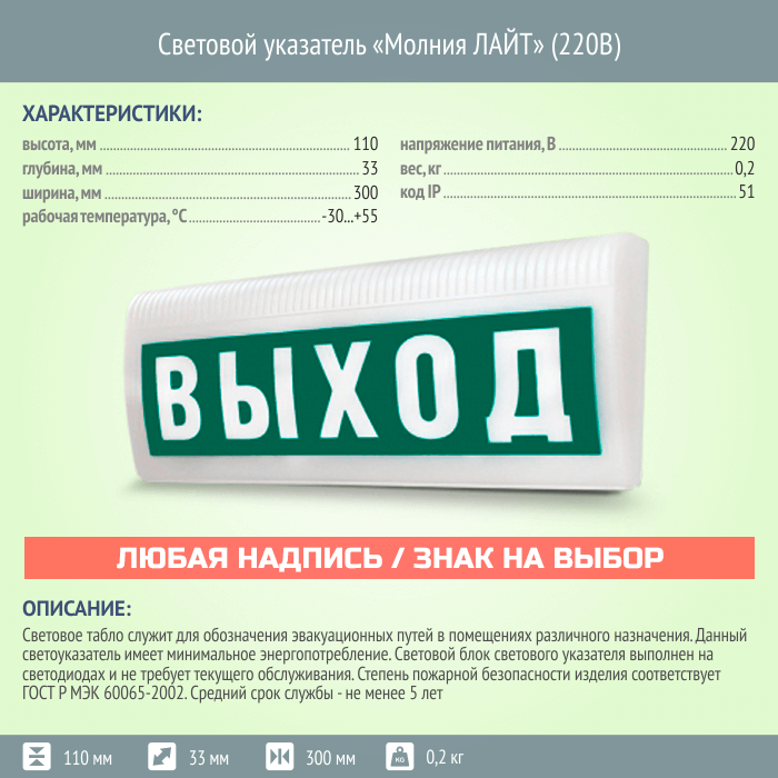 Световой указатель Молния ЛАЙТ (220В) в Волгограде купить
