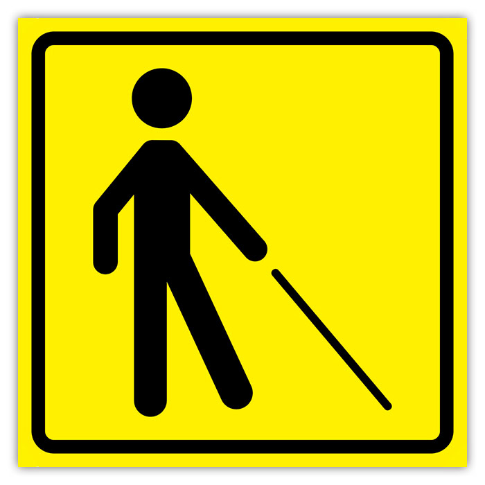 Тактильный предупреждающий знак «Уступите дорогу человеку с белой тростью», ДС77 (пленка, 150х150 мм) в Волгограде купить