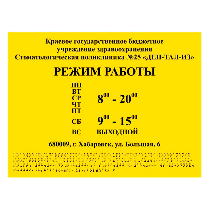 Тактильная вывеска с дублированием азбукой Брайля, ДС10 (полистирол 3 мм, 600х500 мм) в Волгограде купить