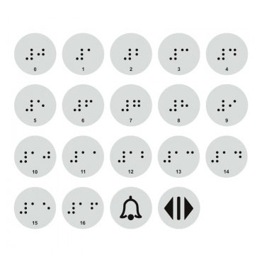 Тактильные наклейки для кнопок лифта с 0 по 16 этаж (набор) , ДС96 (пленка, 20х20 мм, серебристый) в Волгограде купить
