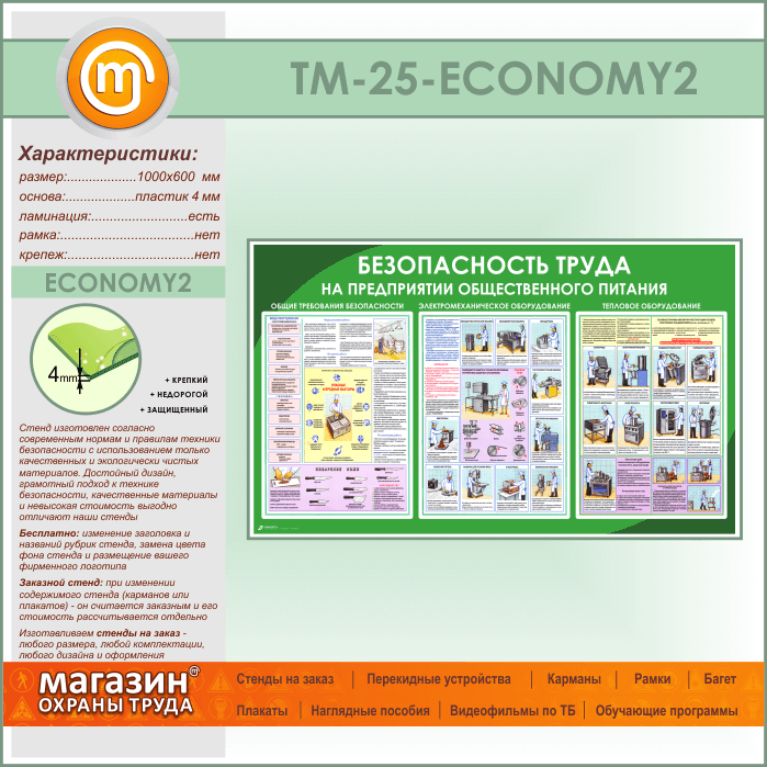 Стенд «Безопасность труда на предприятиях общественного питания» (TM-25-ECONOMY2) в Волгограде купить