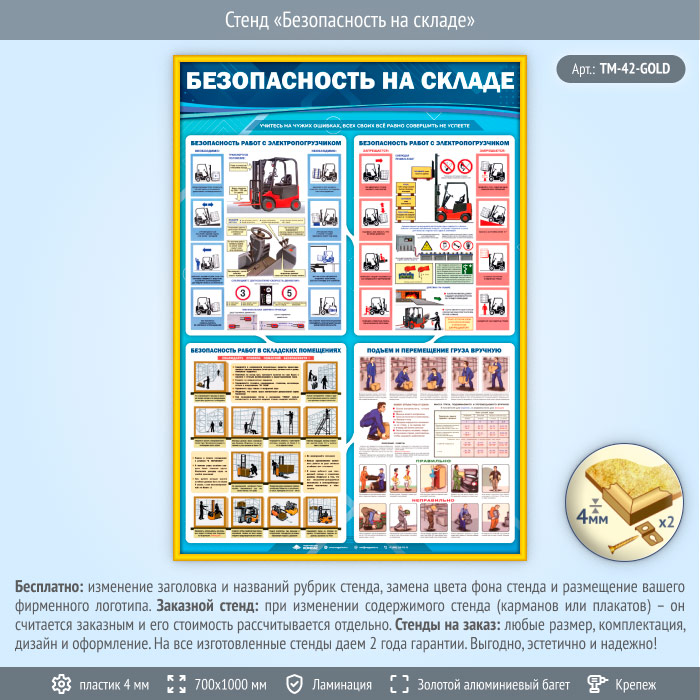 Стенд «Безопасность на складе» (TM-42-GOLD) в Волгограде купить