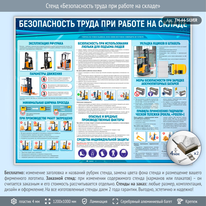 Стенд «Безопасность труда при работе на складе» (TM-44-SILVER) в Волгограде купить