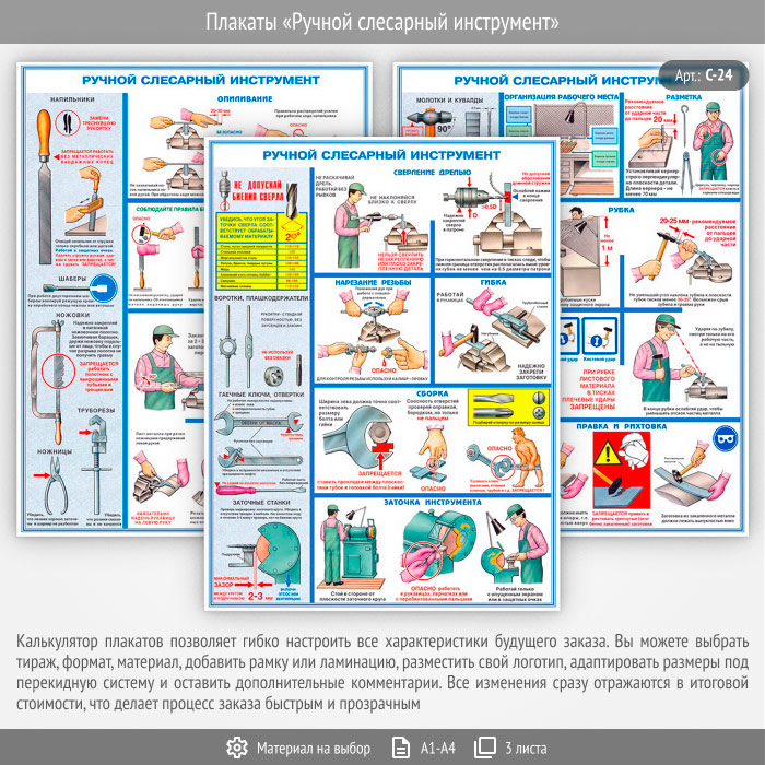 Плакаты «Ручной слесарный инструмент» (С-24, 3 листа) в Волгограде купить