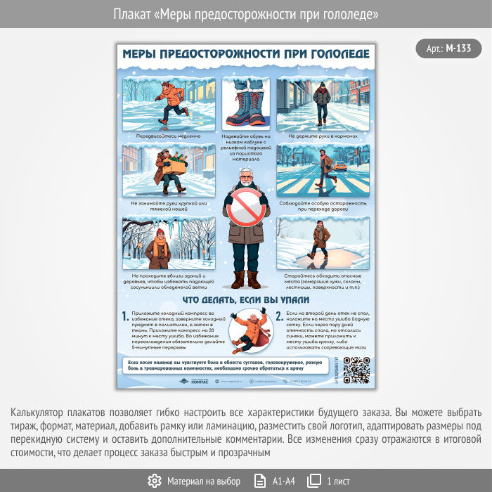 Плакат «Меры предосторожности при гололеде» с QR (М-133, 1 лист) в Волгограде купить