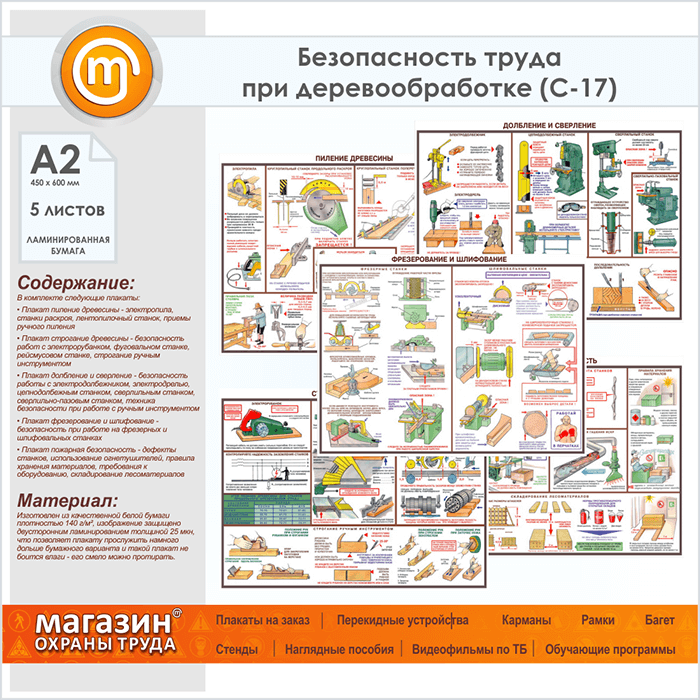 Плакаты «Безопасность труда при деревообработке» (С-17, ламинированная бумага, А2, 5 листов) в Волгограде купить
