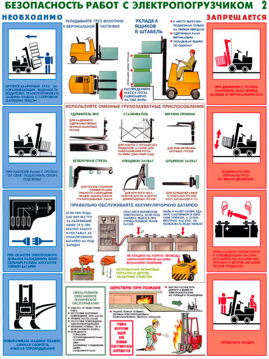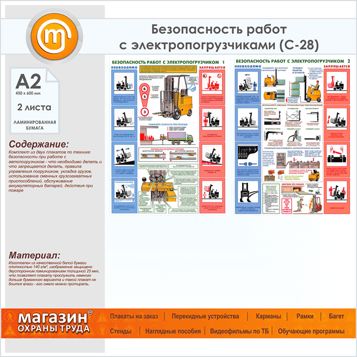 Плакаты «Безопасность работ с электропогрузчиками» (С-28, ламинированная бумага, А2, 2 листа) в Волгограде купить