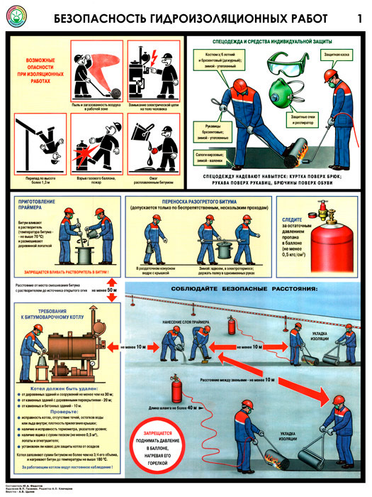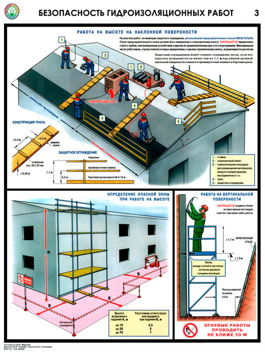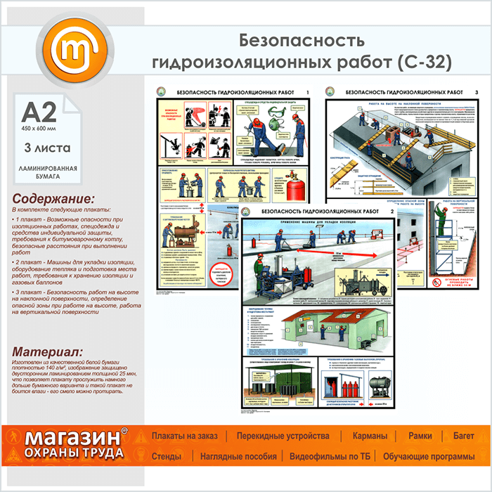 Плакаты «Безопасность гидроизоляционных работ» (С-32, ламинированная бумага, А2, 3 листа) в Волгограде купить