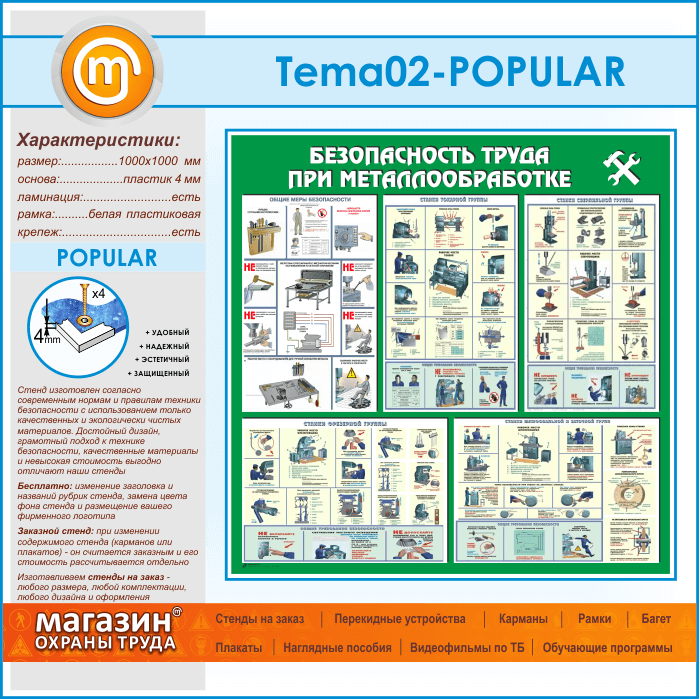 Стенд «Безопасность труда при металлообработке» (TM-02-POPULAR) в Волгограде купить