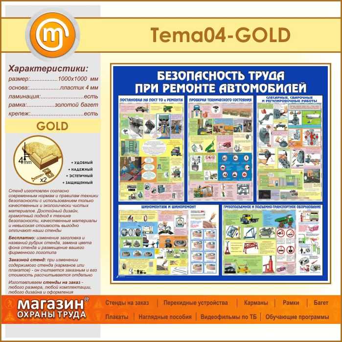 Стенд «Безопасность труда при ремонте автомобилей» (TM-04-GOLD) в Волгограде купить