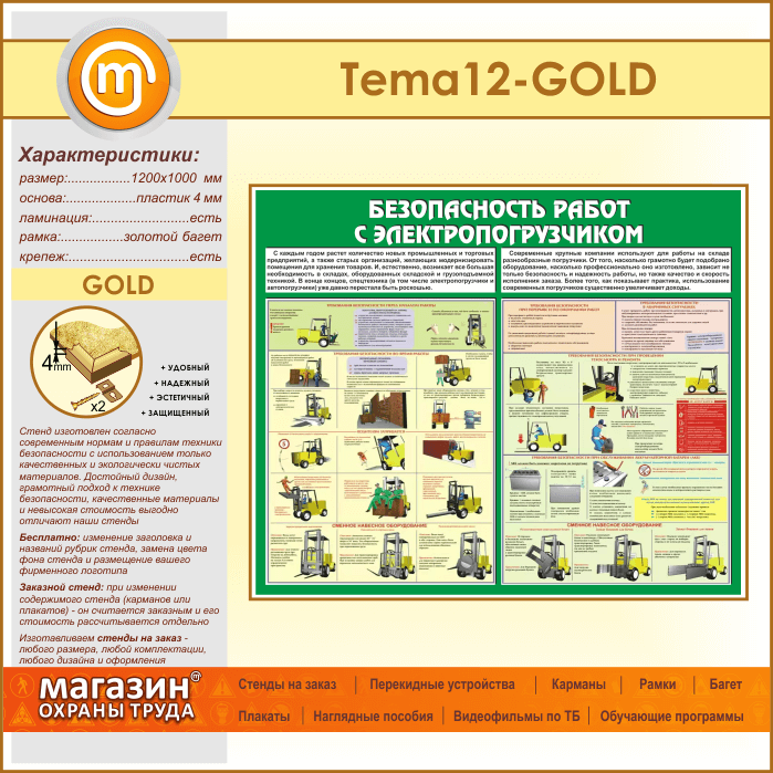 Стенд «Безопасность работ с электропогрузчиком» (TM-12-GOLD) в Волгограде купить