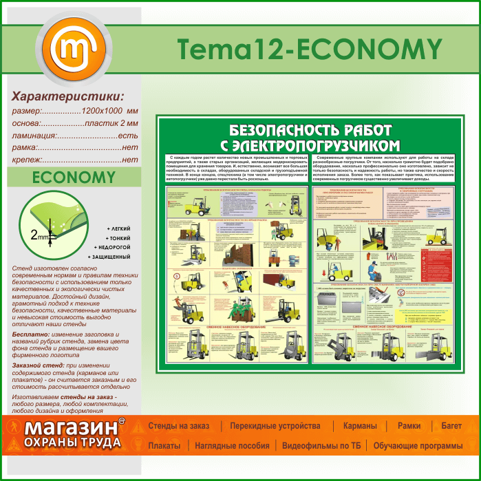 Стенд «Безопасность работ с электропогрузчиком» (TM-12-ECONOMY) в Волгограде купить