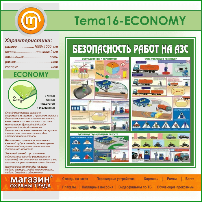 Стенд «Безопасность работ на автозаправочных станциях» (TM-16-ECONOMY) в Волгограде купить