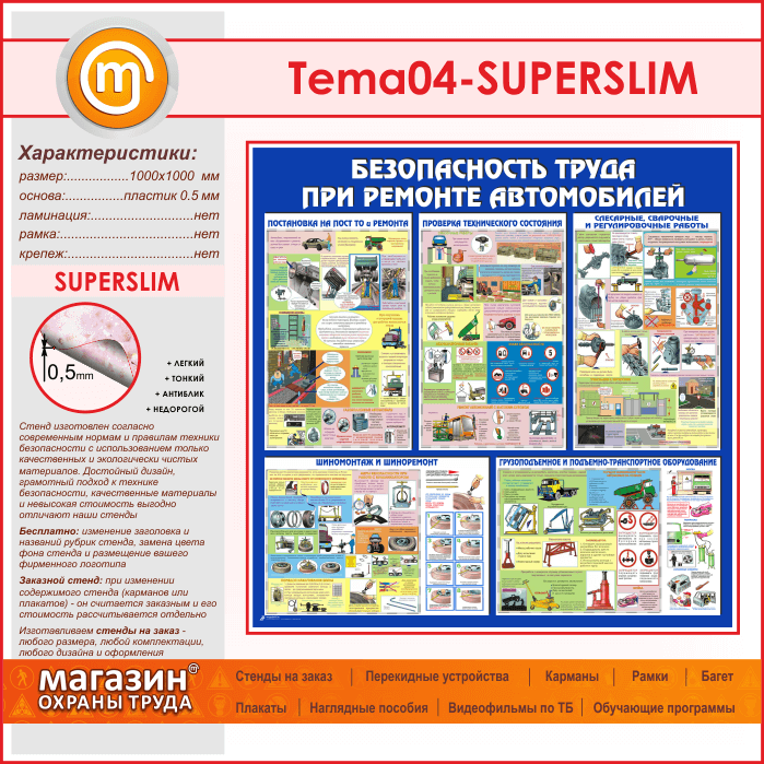 Стенд «Безопасность труда при ремонте автомобилей» (TM-04-SUPERSLIM) в Волгограде купить