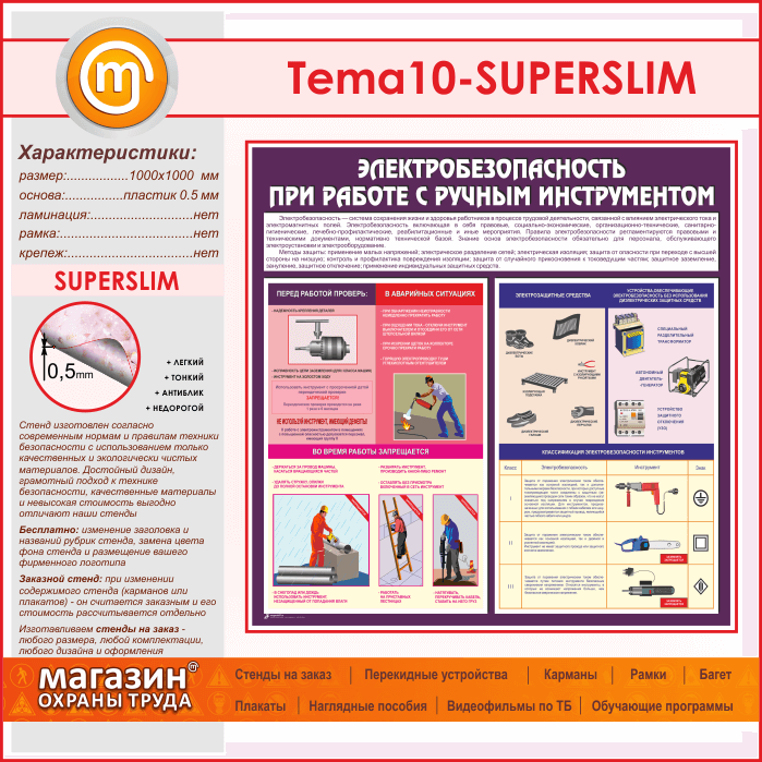 Стенд «Электробезопасность при работе с ручным инструментом» (TM-10-SUPERSLIM) в Волгограде купить