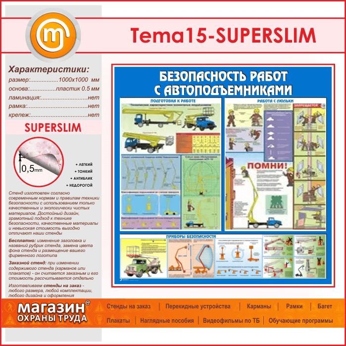 Стенд «Безопасность работ с автоподъемниками» (TM-15-SUPERSLIM) в Волгограде купить
