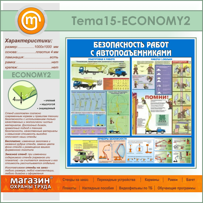 Стенд «Безопасность работ с автоподъемниками» (TM-15-ECONOMY2) в Волгограде купить