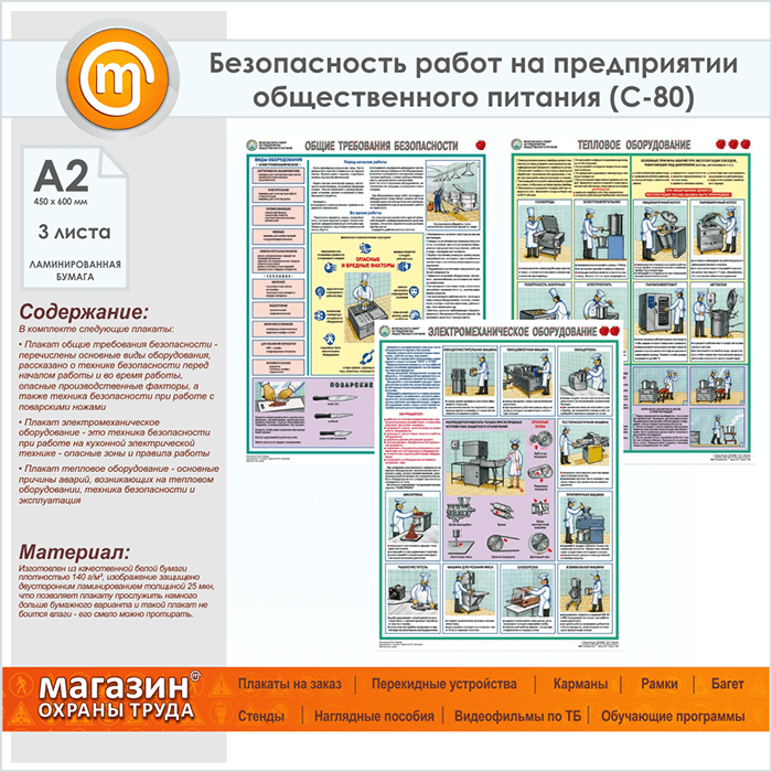Плакат « Правила охраны труда на предприятии общественного питания» (С-80, ламинированная бумага, А2, 3 листа) в Волгограде купить