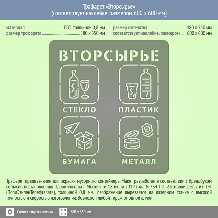Трафарет «Вторсырье» (соответствует наклейке, размером 600х600 мм) в Волгограде купить