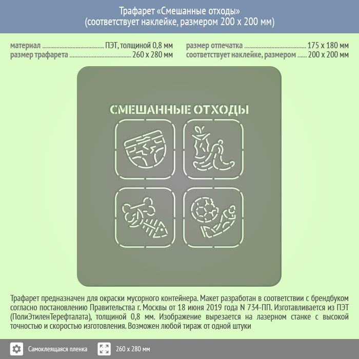 Трафарет «Смешанные отходы» (соответствует наклейке, размером 200х200 мм) в Волгограде купить