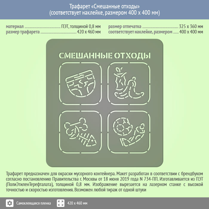 Трафарет «Смешанные отходы» (соответствует наклейке, размером 400х400 мм) в Волгограде купить