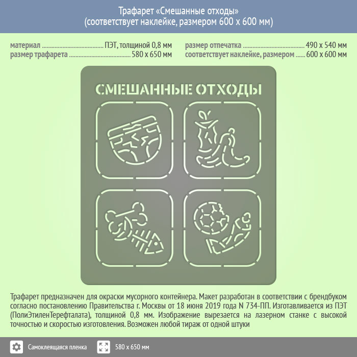 Трафарет «Смешанные отходы» (соответствует наклейке, размером 600х600 мм) в Волгограде купить