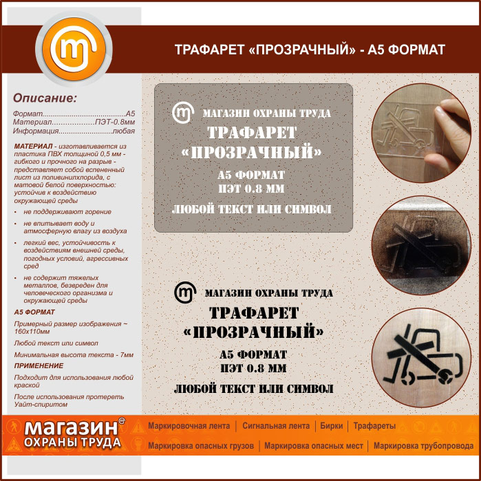 Трафарет «ПРОЗРАЧНЫЙ» (А5 формат, ПЭТ 0,8 мм) в Волгограде купить