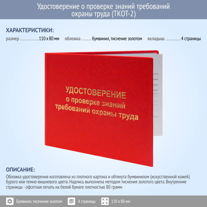 Бланк удостоверения о проверке знаний требований охраны труда (ТКОТ-2) в Волгограде купить